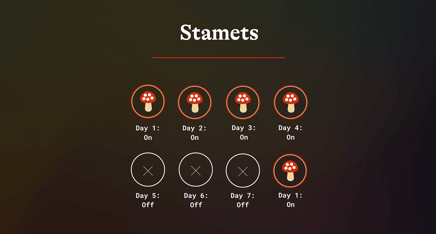 Stamets: 4️⃣ days on, 3️⃣ days off. Repeat.