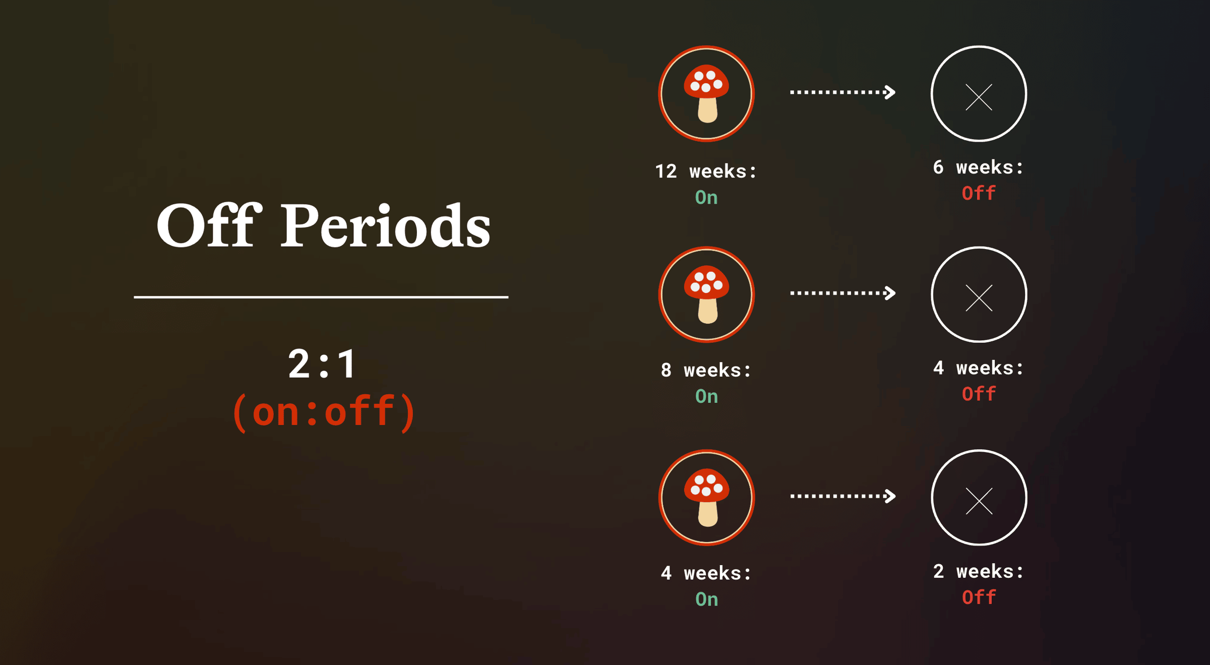 Over time, you can experiment with various schedules and off periods to find what works best for you!